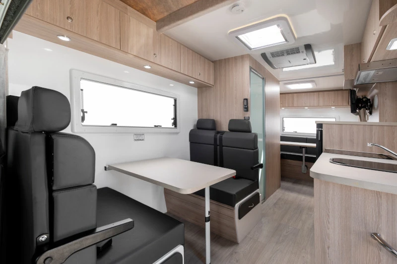 O Euro Camper foi projetado para até 4 adultos e oferece um interior bem estruturado para viagens em grupo. A cozinha completa e o refrigerador facilitam o preparo de refeições diárias, ajudando a manter a rotina organizada. É uma opção sólida para quem quer explorar diferentes destinos com estrutura e praticidade