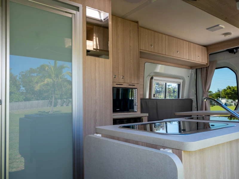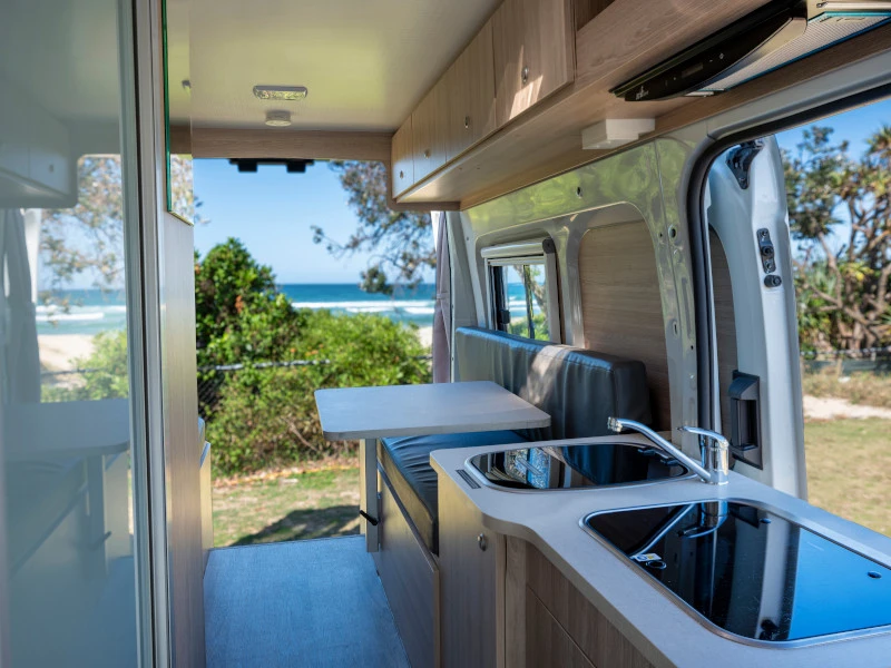 O Hitop da Apollo na Nova Zelândia acomoda até 2 adultos e oferece a praticidade de um veículo compacto com toalete interno. Como não há ducha, é um modelo ideal para quem pretende utilizar campings e estruturas externas para banho. A cozinha equipada e o refrigerador permitem organizar refeições simples, tornando o dia a dia mais prático. É uma boa opção para casais que buscam mobilidade, custo-benefício e o essencial de conforto.