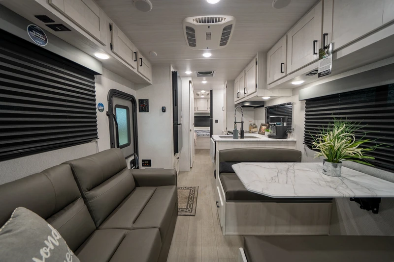 O Large Motorhome 30ft é o modelo ideal para quem valoriza espaço e comodidade em cada detalhe da viagem. Perfeito para famílias grandes ou grupos de amigos, oferece amplas áreas internas, camas confortáveis, cozinha completa e banheiro privativo, proporcionando o máximo de conforto na estrada. Seu design foi pensado para garantir praticidade, com ambientes integrados que facilitam o dia a dia e tornam cada parada ainda mais agradável. Robusto, estável e cheio de recursos, é o motorhome certo para quem quer viver aventuras inesquecíveis com toda a estrutura e o acolhimento da Motorhome Experience.