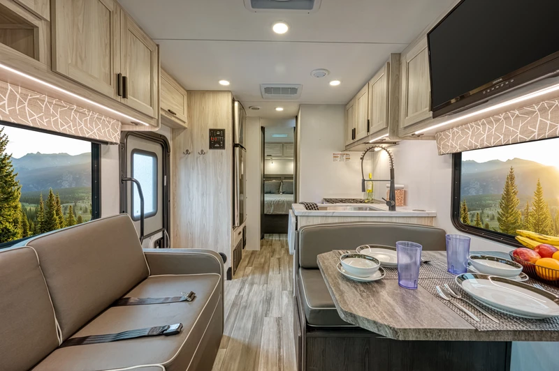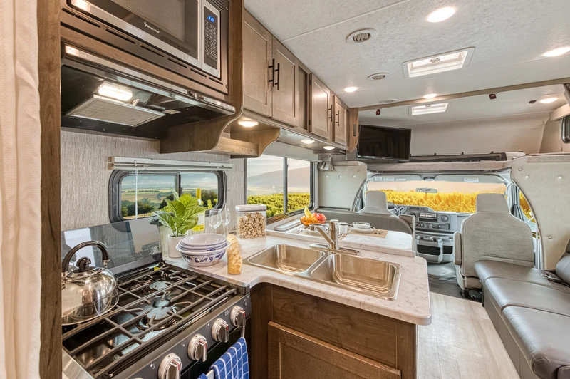 O C Large 27–29ft é o motorhome ideal para quem deseja viajar com mais pessoas sem abrir mão do conforto. Projetado para oferecer amplitude e bem-estar, conta com múltiplas camas, cozinha completa, banheiro privativo e áreas de convivência que tornam cada parada mais agradável. Mesmo com seu tamanho generoso, mantém excelente dirigibilidade e autonomia na estrada. Ideal para famílias ou grupos que valorizam praticidade e liberdade, este modelo combina espaço interno inteligente com toda a estrutura necessária para transformar cada destino em um novo lar sobre rodas.