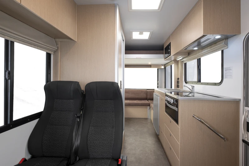 O Cascade comporta até 4 adultos e oferece um interior bem distribuído, com áreas de dormir e convivência planejadas para viagens em grupo. O banheiro interno completo (toalete e ducha) traz mais praticidade em roteiros de média e longa duração. A cozinha completa permite preparar refeições com facilidade, tornando o dia a dia a bordo mais organizado e econômico. Ideal para famílias ou grupos de amigos que querem viajar com estrutura.