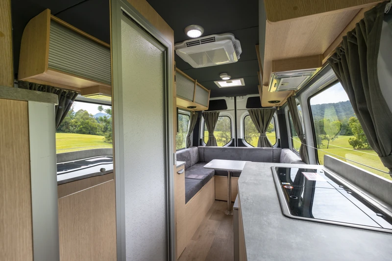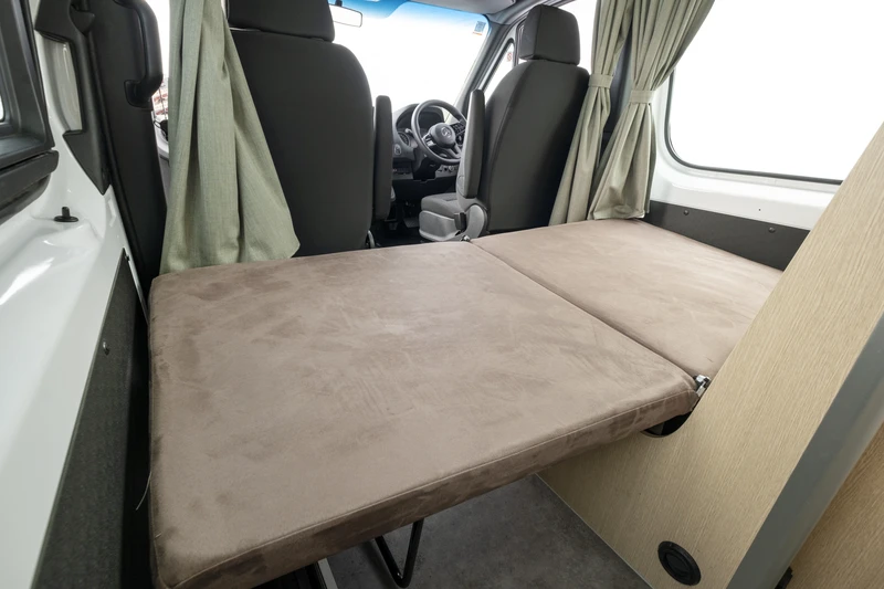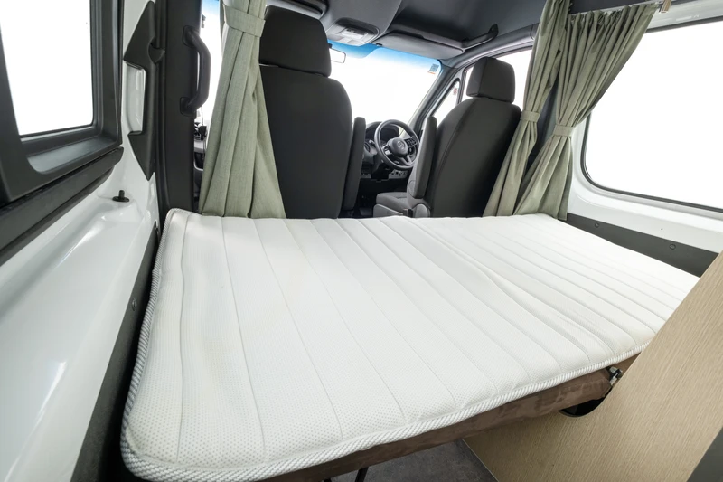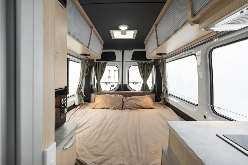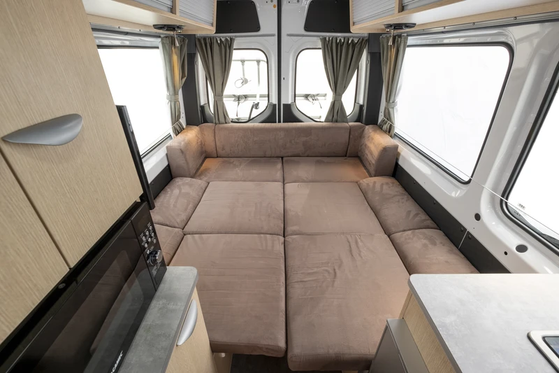 O Ultima Plus atende até 3 pessoas (2 adultos e 1 criança), mantendo o conceito de motorhome compacto com um pouco mais de espaço de pernoite. A área interna é flexível e se adapta bem ao dia a dia em família. O banheiro completo, com toalete e ducha, e a cozinha completa garantem mais independência na escolha dos roteiros. Uma ótima opção para famílias pequenas que desejam conforto, segurança e liberdade de movimento.