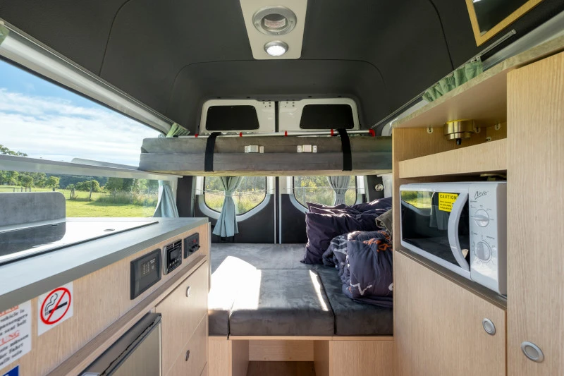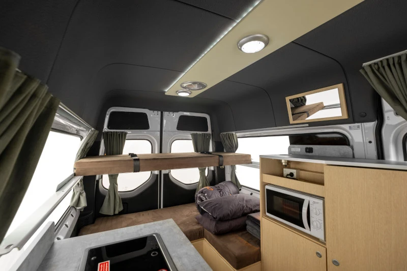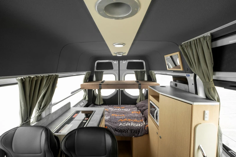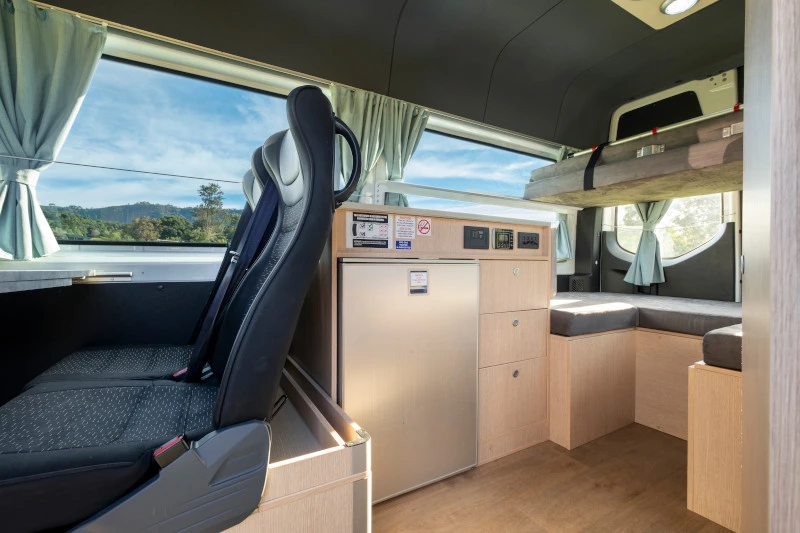 O Double Down atende até 4 adultos e oferece uma configuração de campervan pensada para quem busca boa relação custo-benefício. Ele também conta com toalete do tipo porta-potti, trazendo mais flexibilidade em pernoites fora de grandes estruturas, ainda que sem ducha interna. A cozinha equipada e o refrigerador ajudam a manter a rotina de alimentação do grupo mais organizada. Uma ótima opção para amigos ou famílias que querem liberdade na estrada com um veículo compacto.